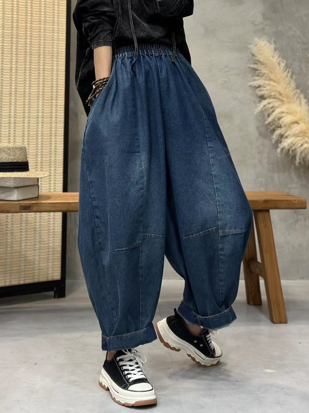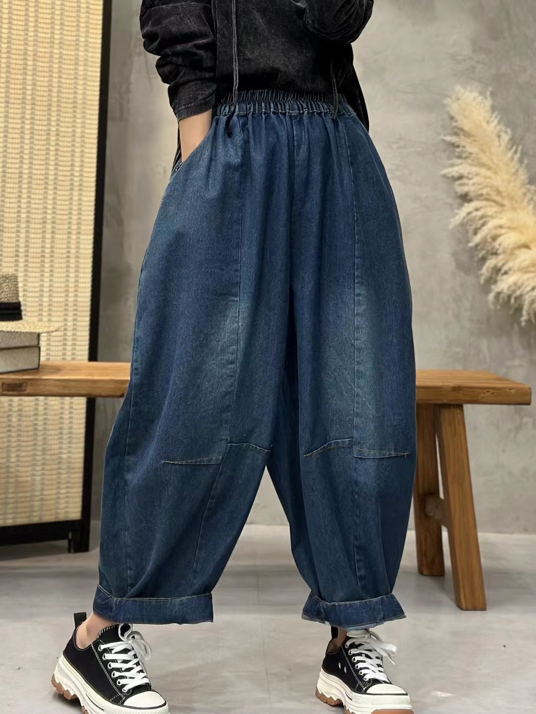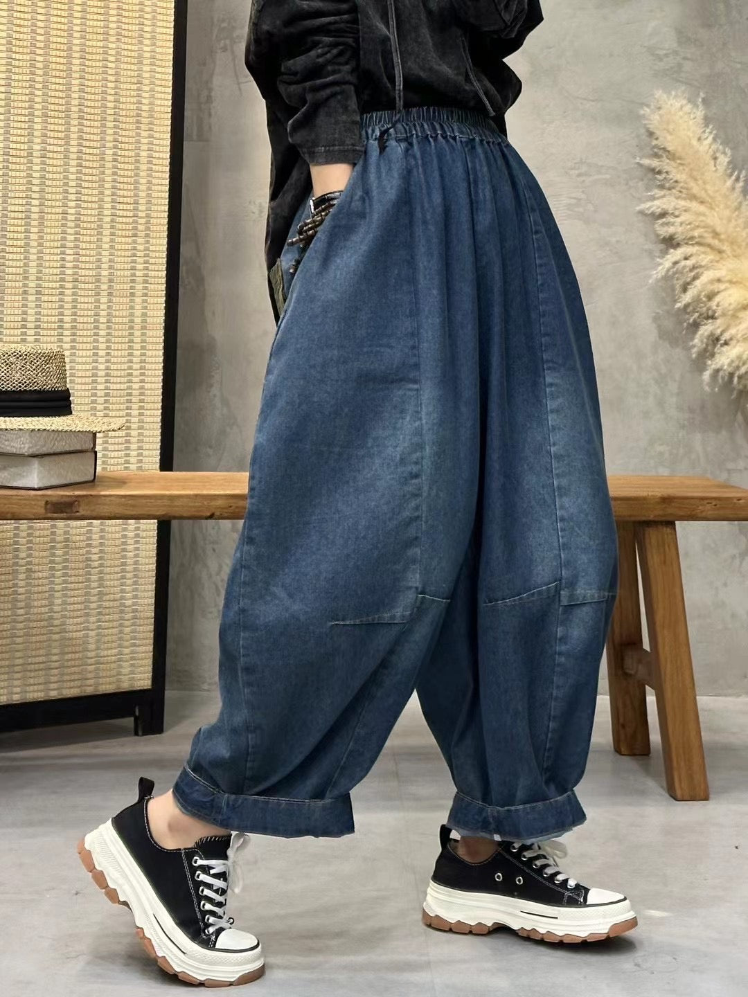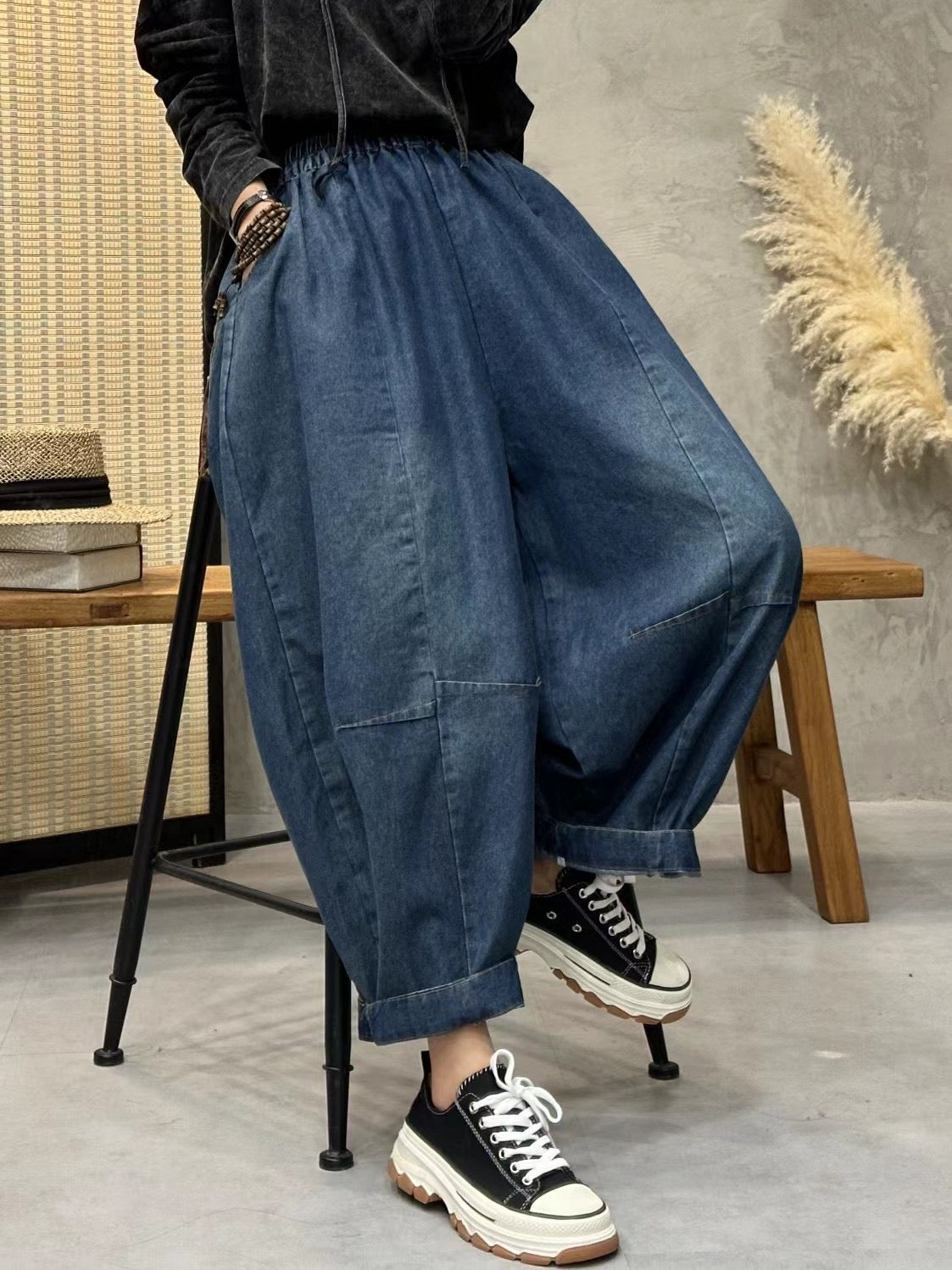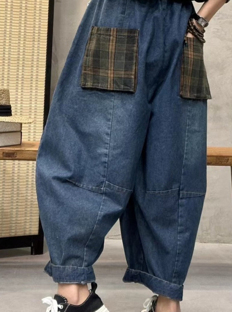 Casual Wide Leg Crop Jeans With Plaid Pockets