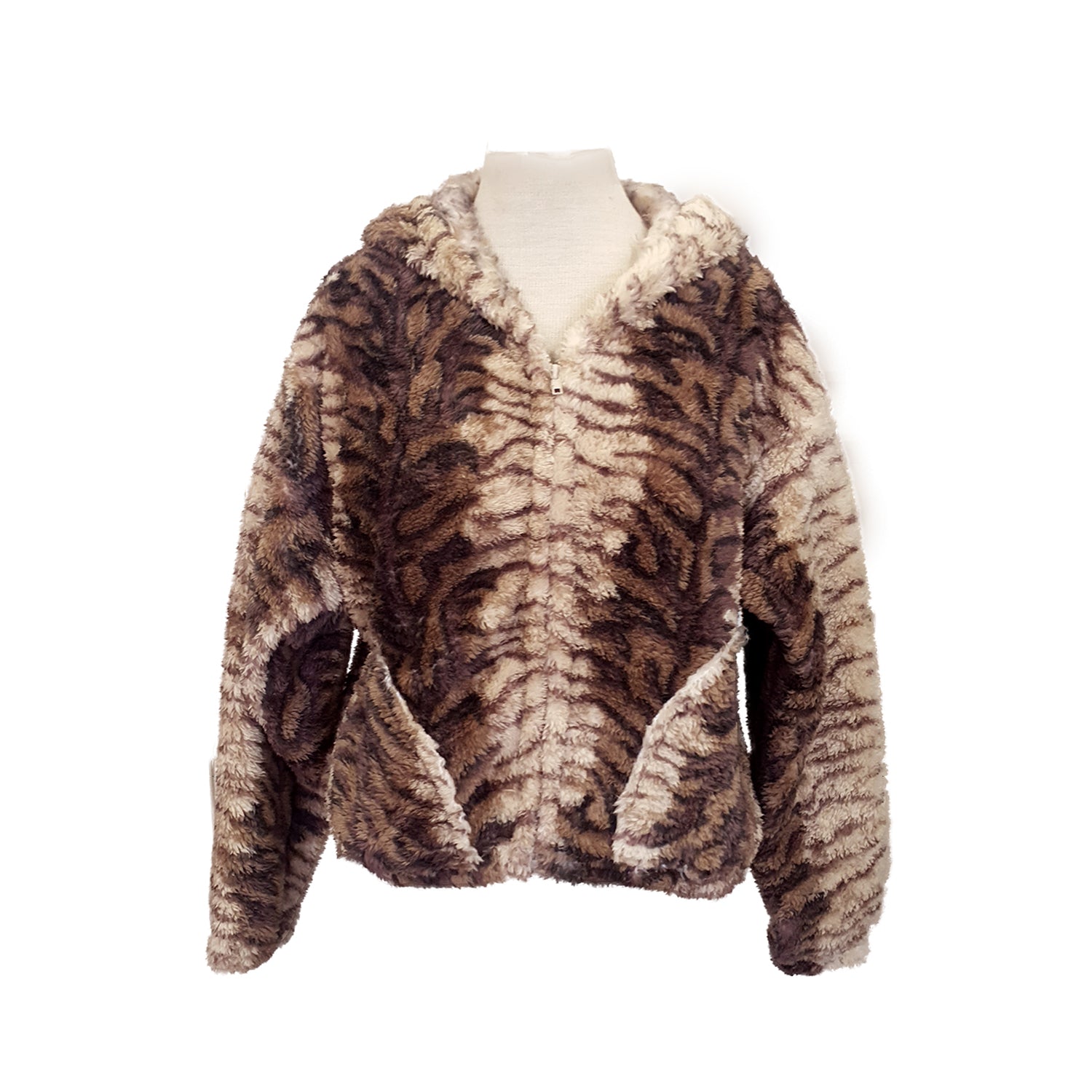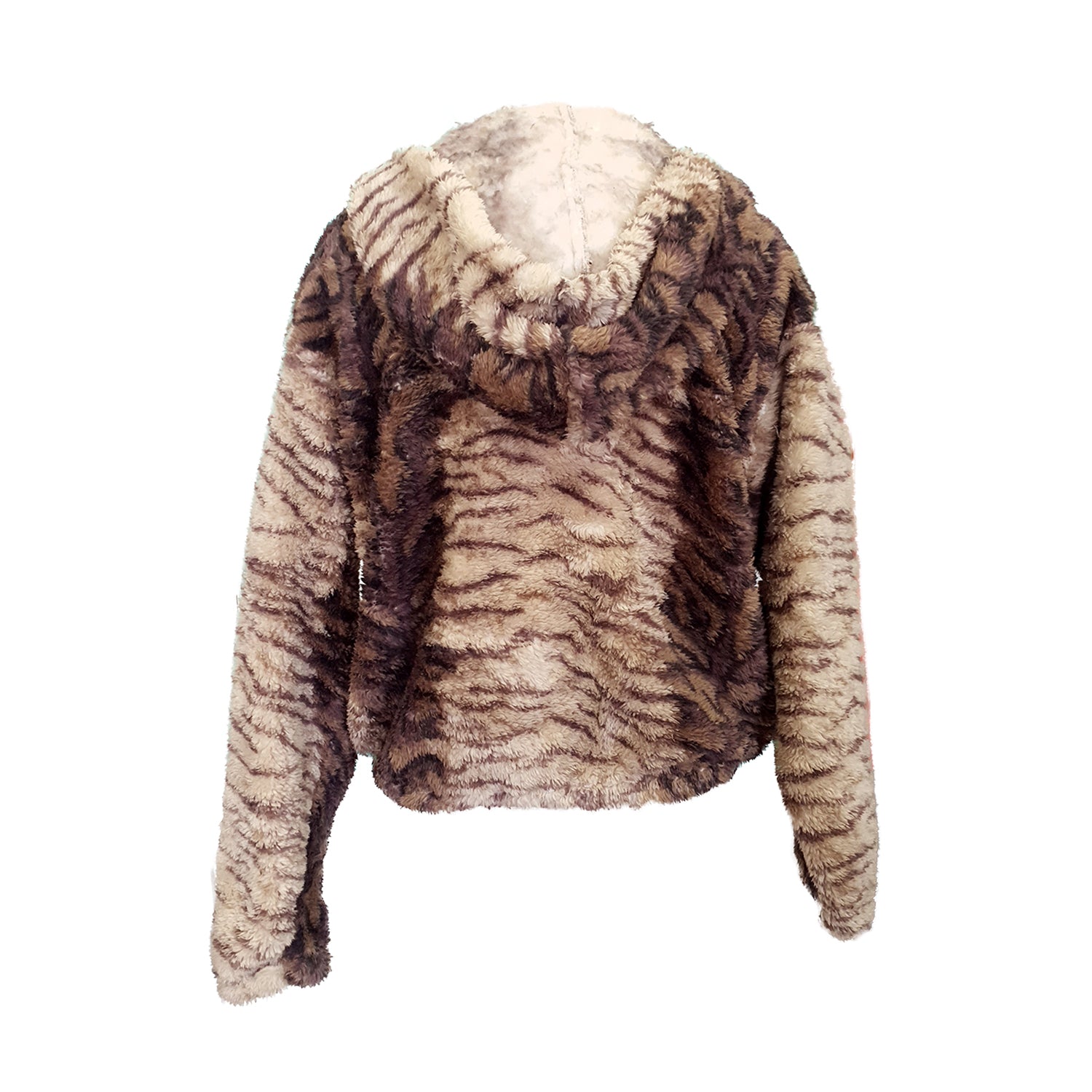 Cropped Fluffy Hoodie (Animal Print – Brown Tiger)