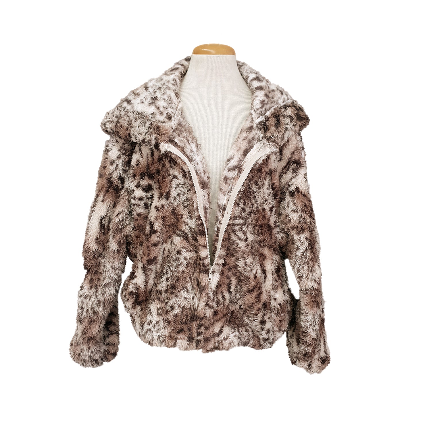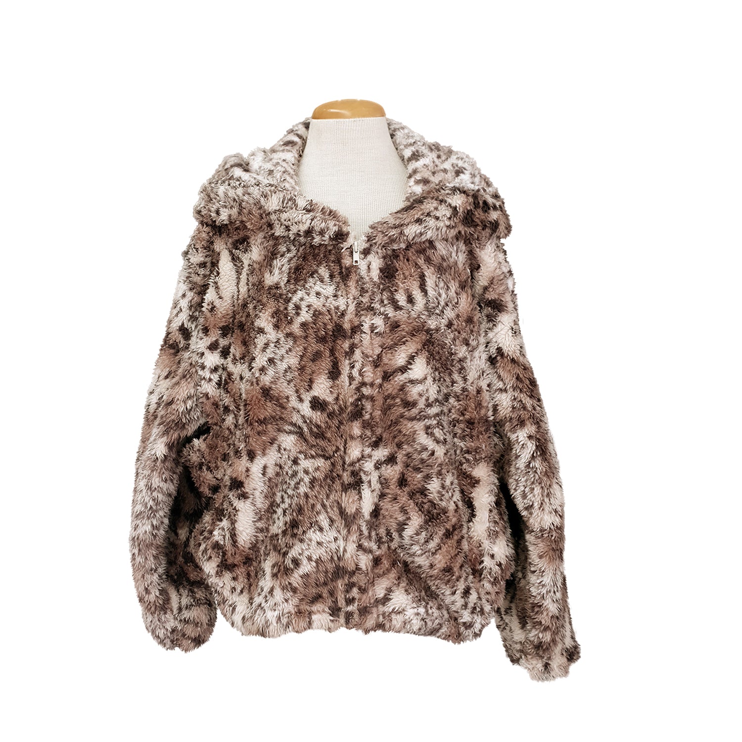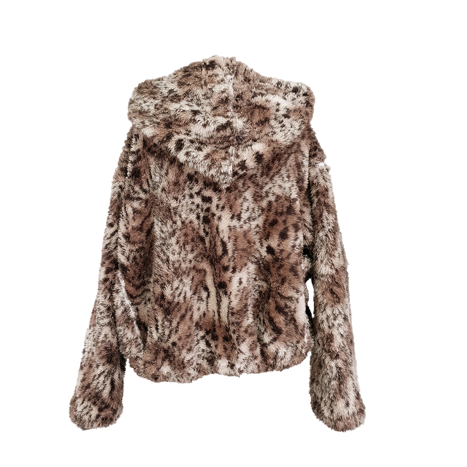 This comfy winter jacket is styled as a bomber in a fluffy cheetah print with patch pockets, a hoodie and a zip. These are lovely to relax and snuggle up in at home as well as keep warm on a chilly night.