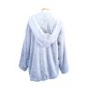 This comfy winter jacket is styled as a bomber in a fluffy ice grey with patch pockets, an oversized hoodie and a zip. These are lovely to relax and snuggle up in at home as well as keep warm on a chilly night.