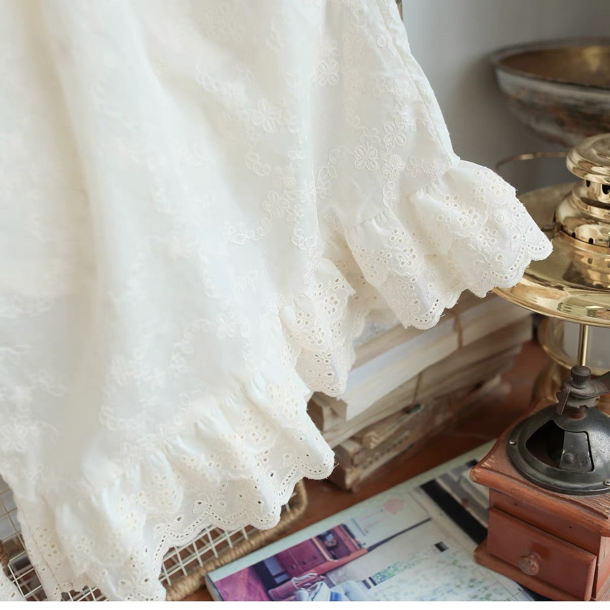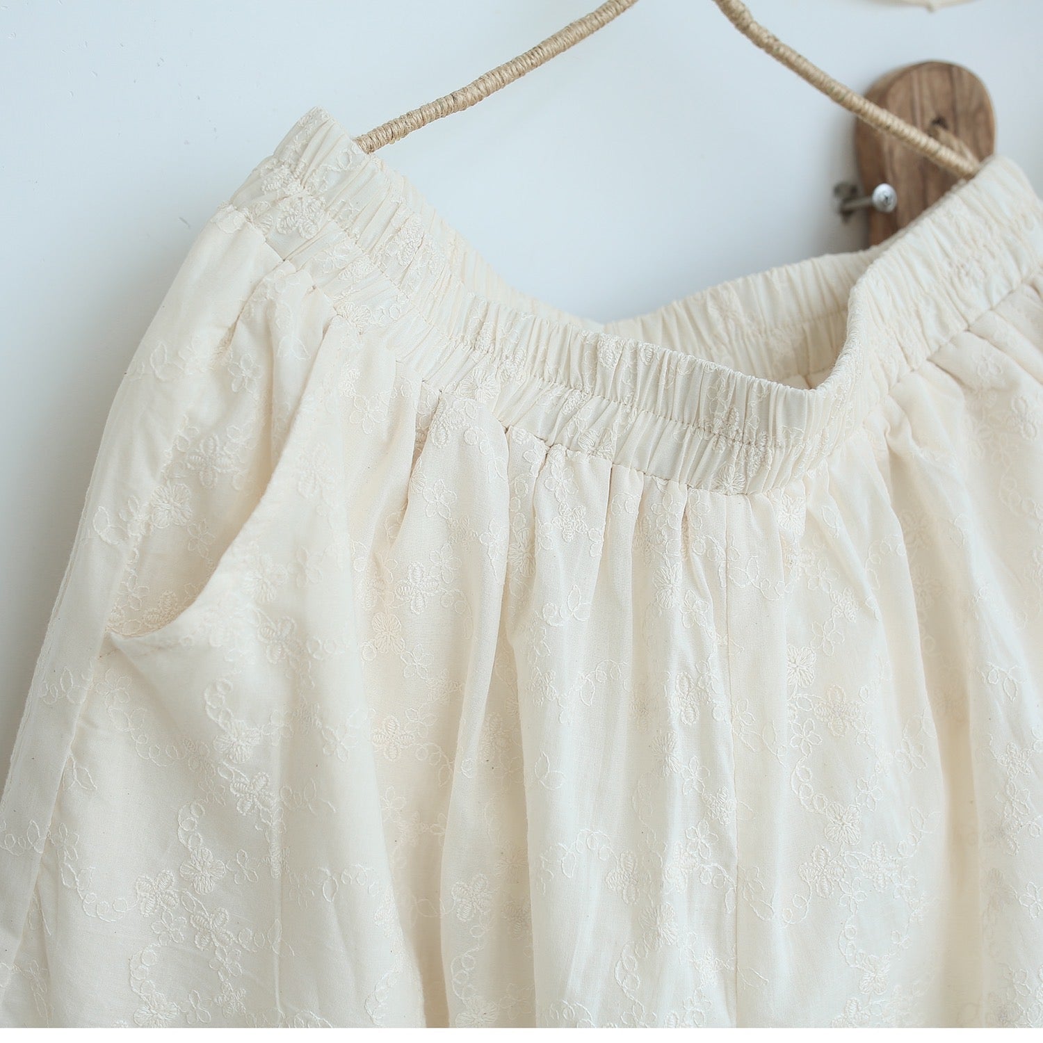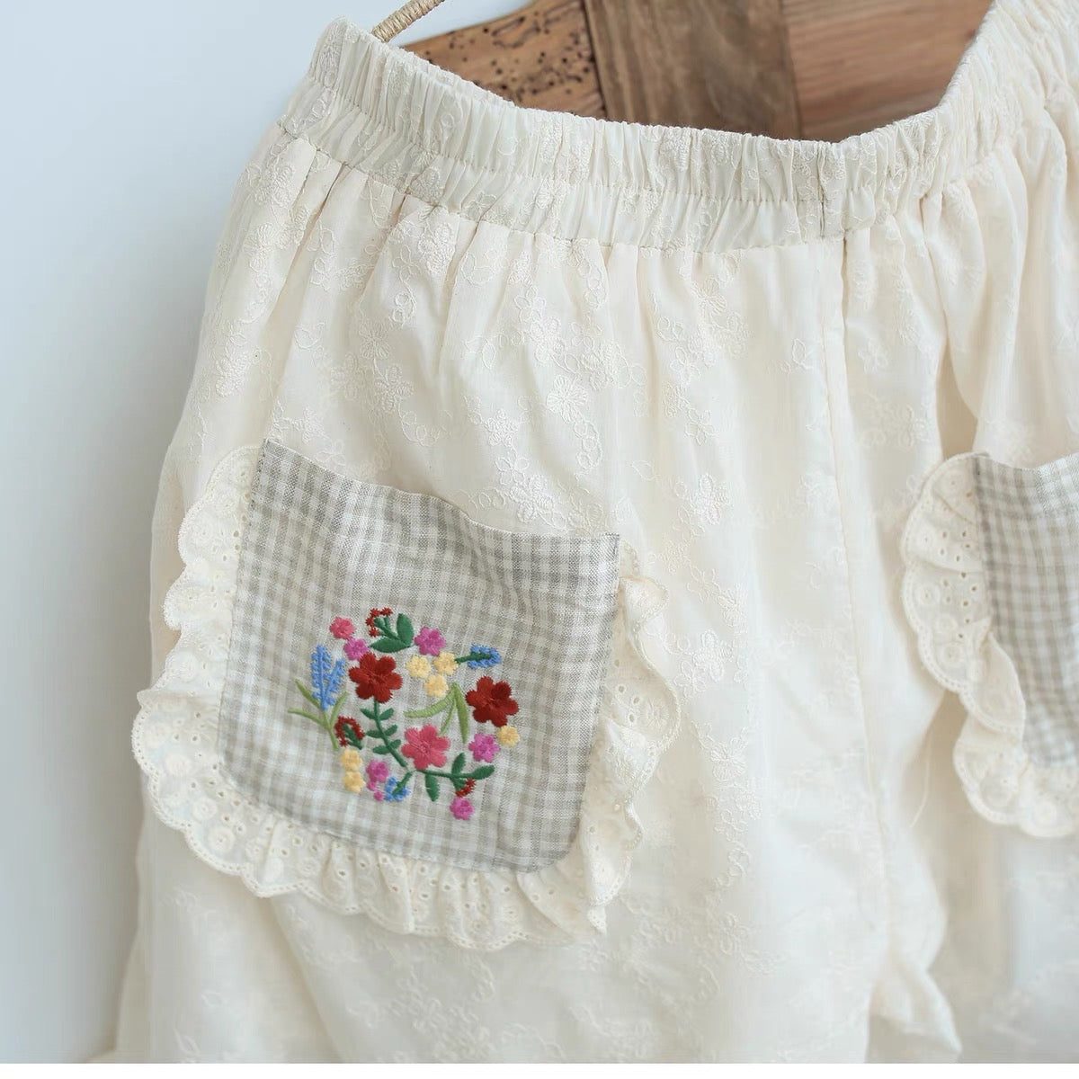 Cute Embroidered Pockets Lace Trim Lined Shorts