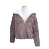 This comfy winter jacket is styled as a bomber in a donkey faux fur, sherpa lined with patch pockets, an oversized hoodie and a zip. These are lovely to relax and snuggle up in at home as well as keep warm on a chilly night.