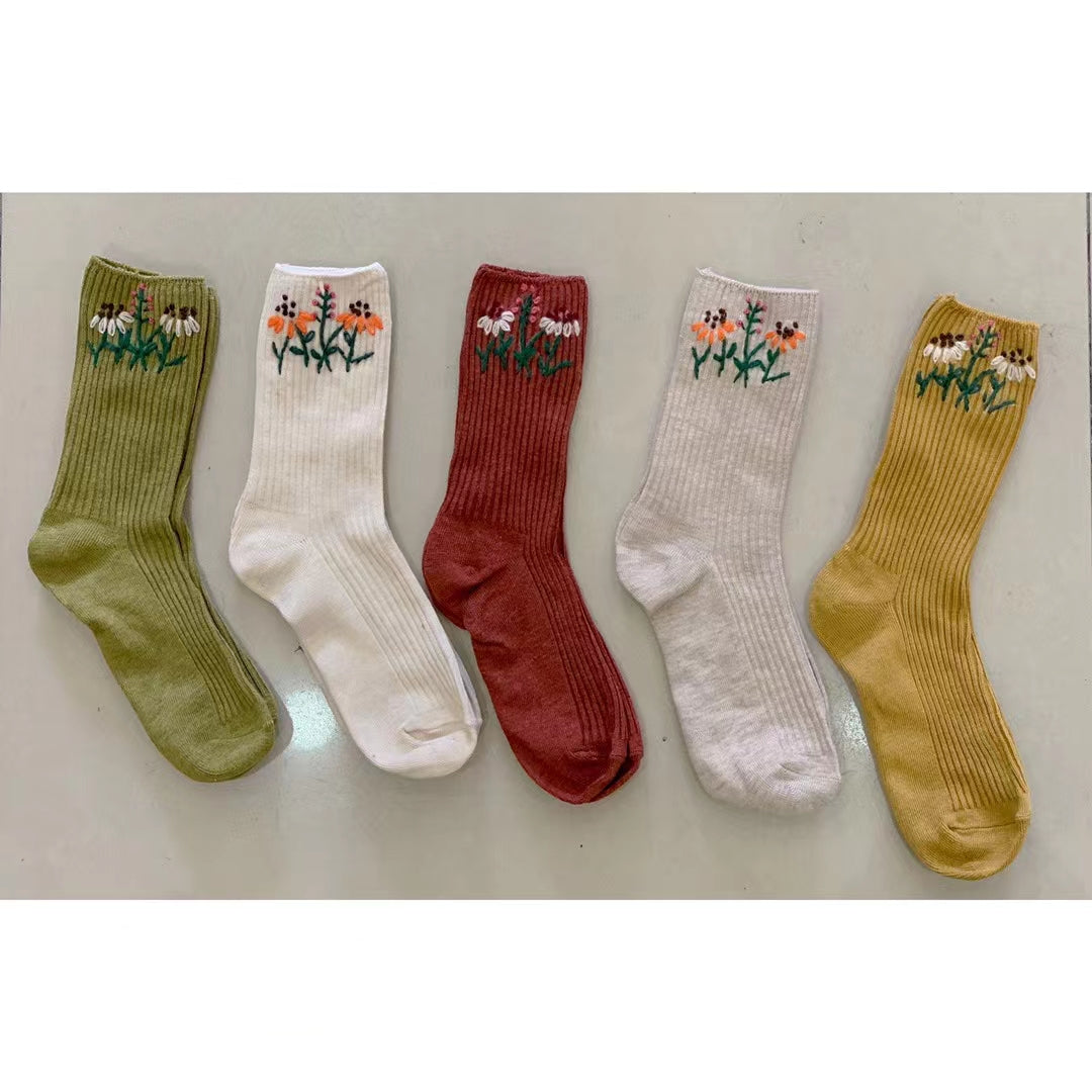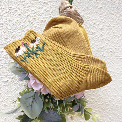 Floral Hand Embroidered Wool Socks