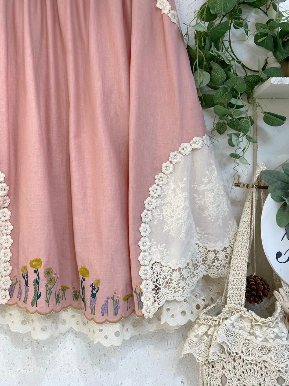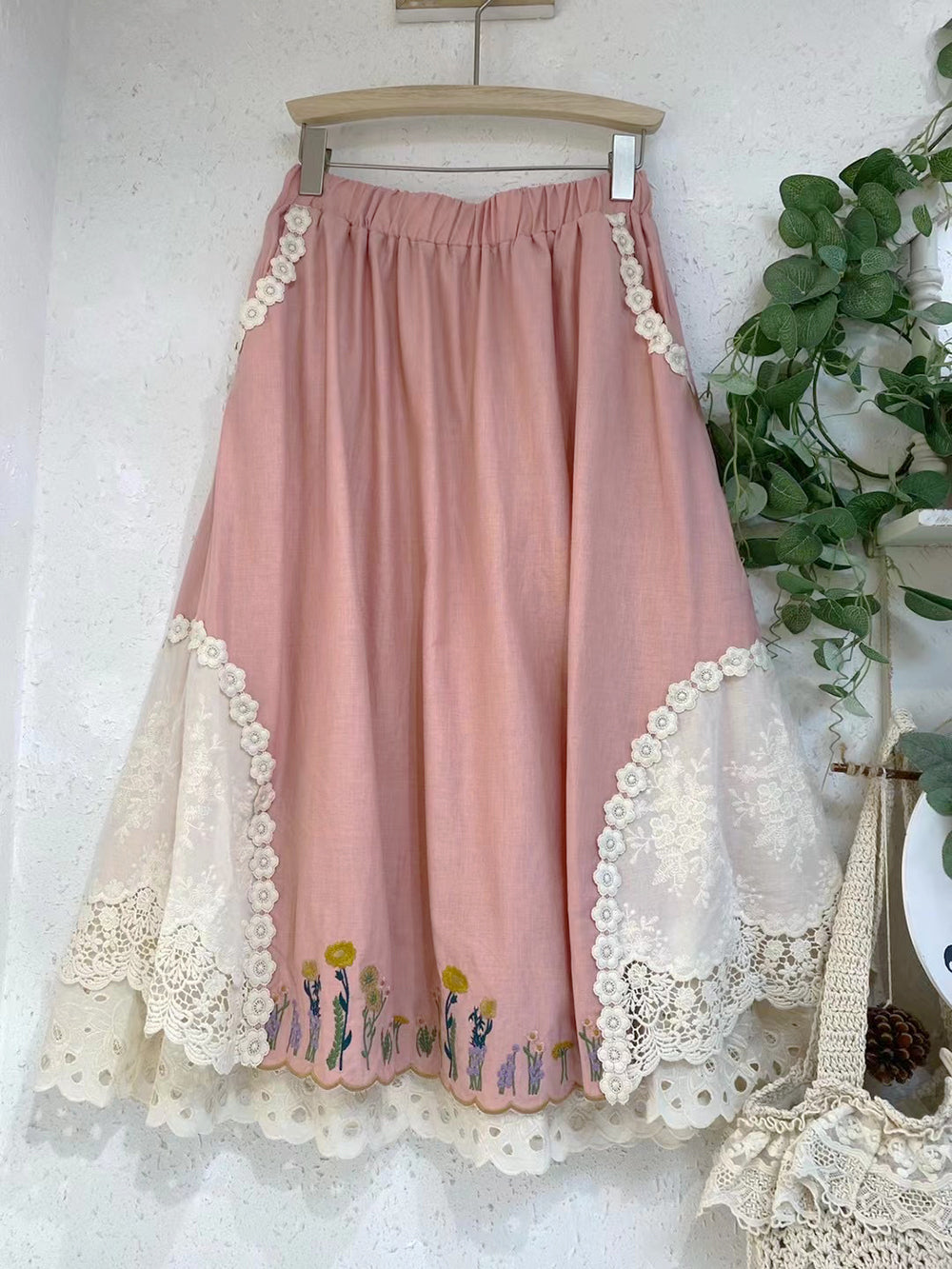 Linen Forest Girl Floral Embroidered Skirt