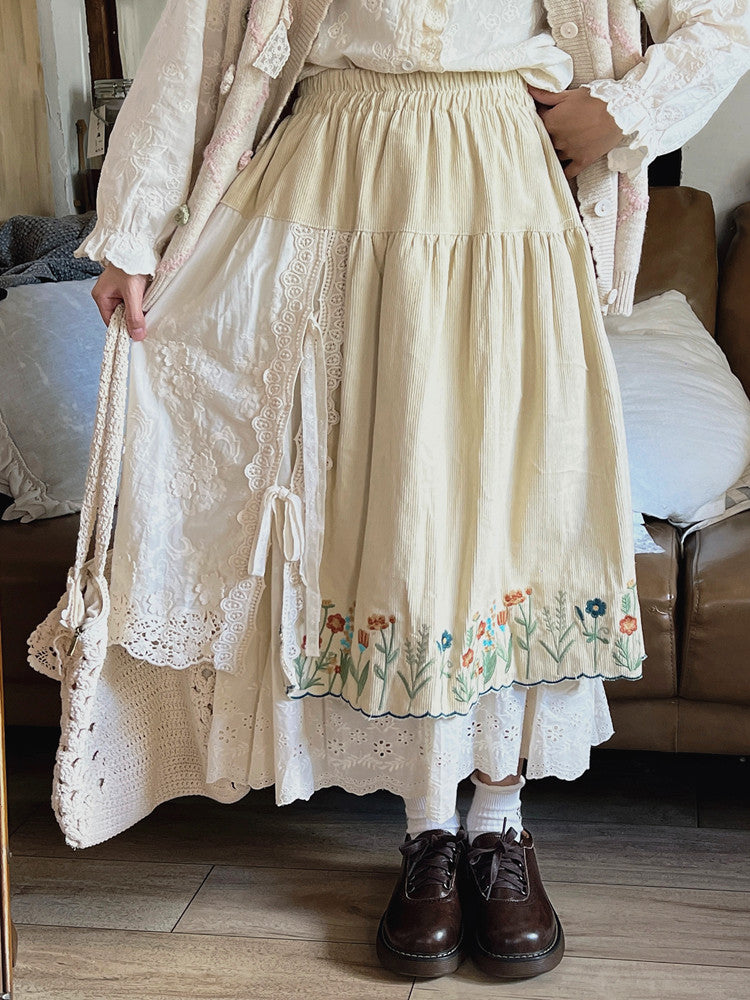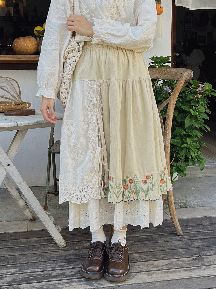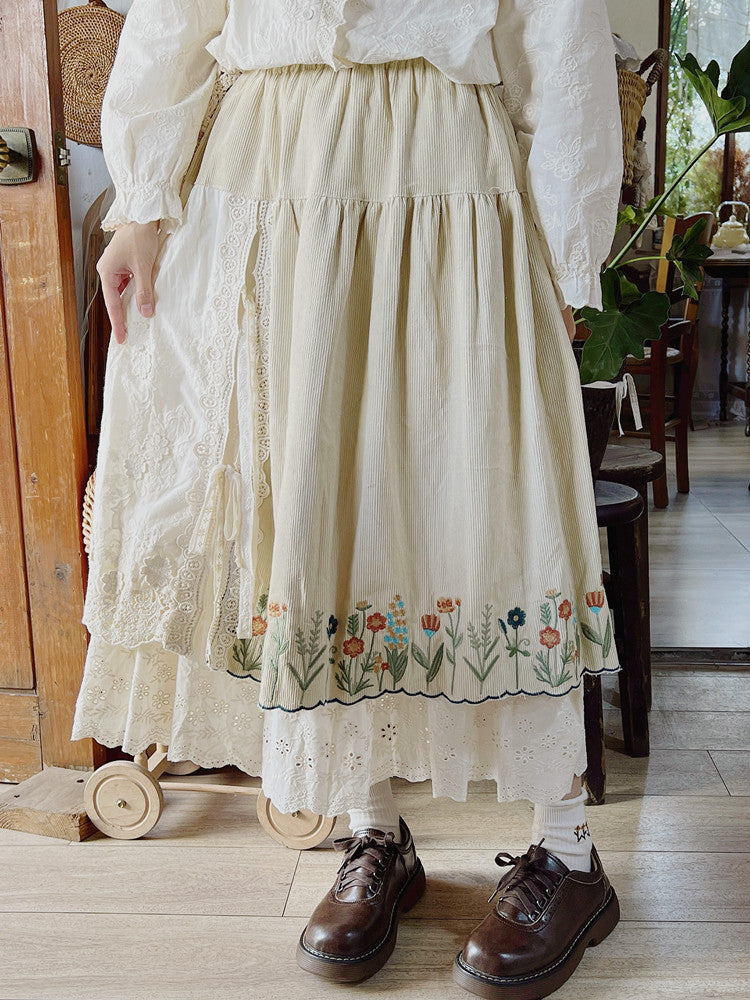 Radiantshirt Floral Embroidered Corduroy Skirt