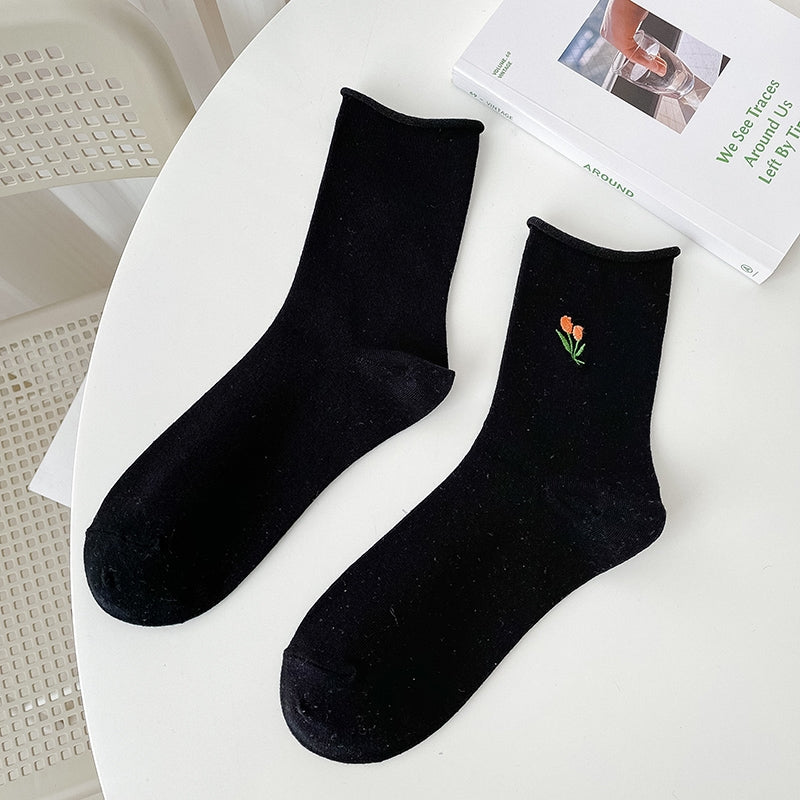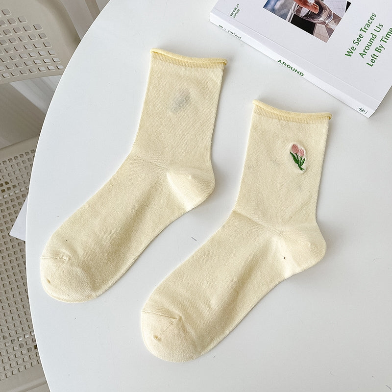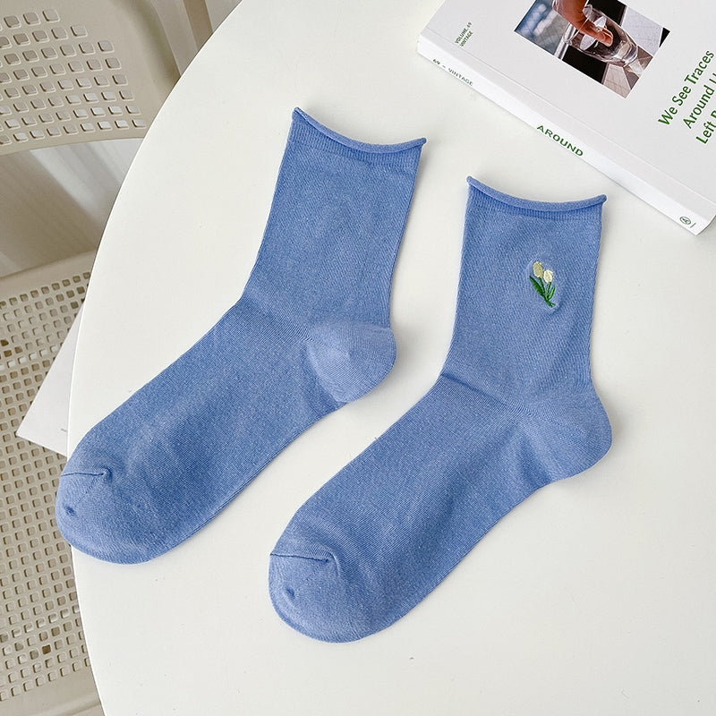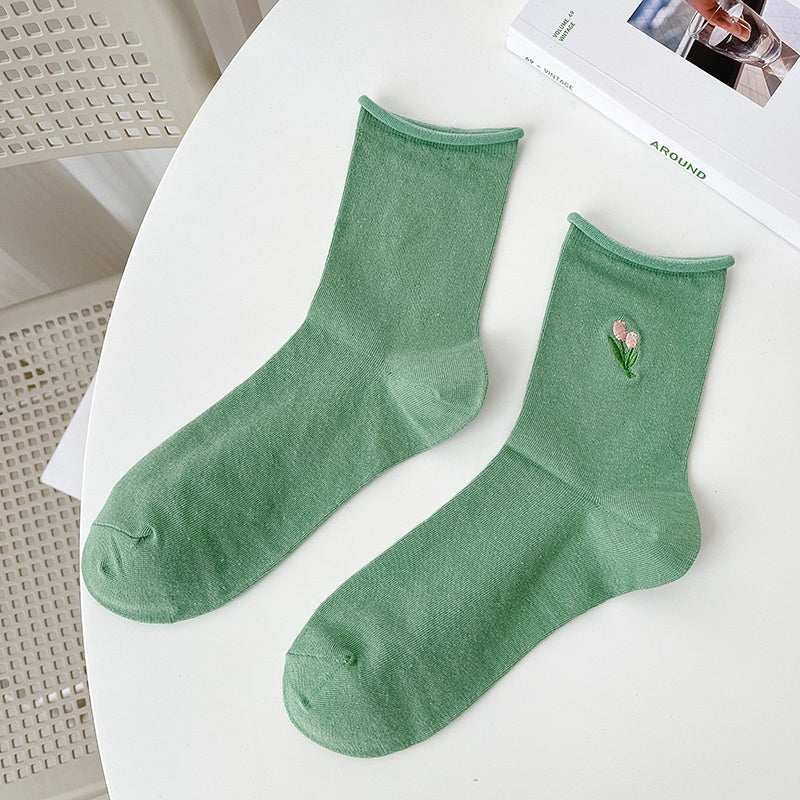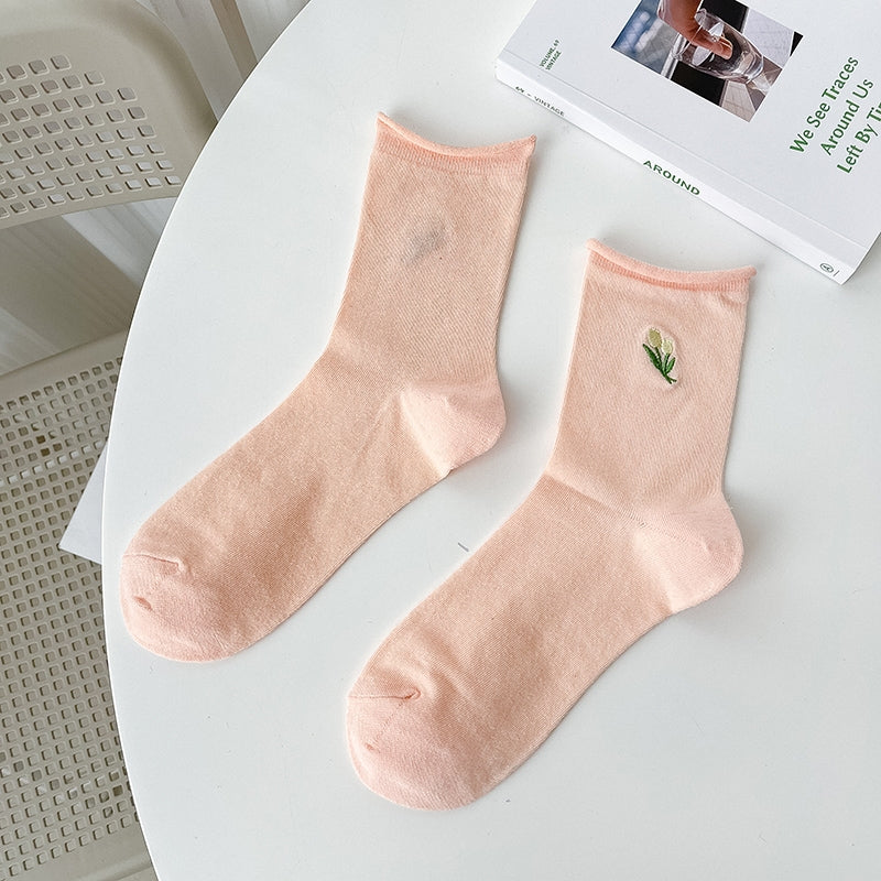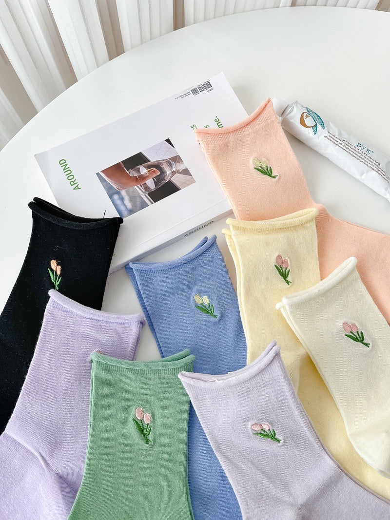 Tulip Embroidered Socks